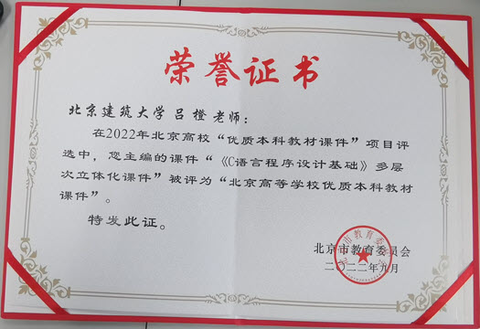 5、2022年,《C语言程序设计基础》荣获“北京高校优质本科课件”