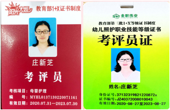 2020年取得1+X幼儿照护考评员、1+X幼儿母婴护理考评员。