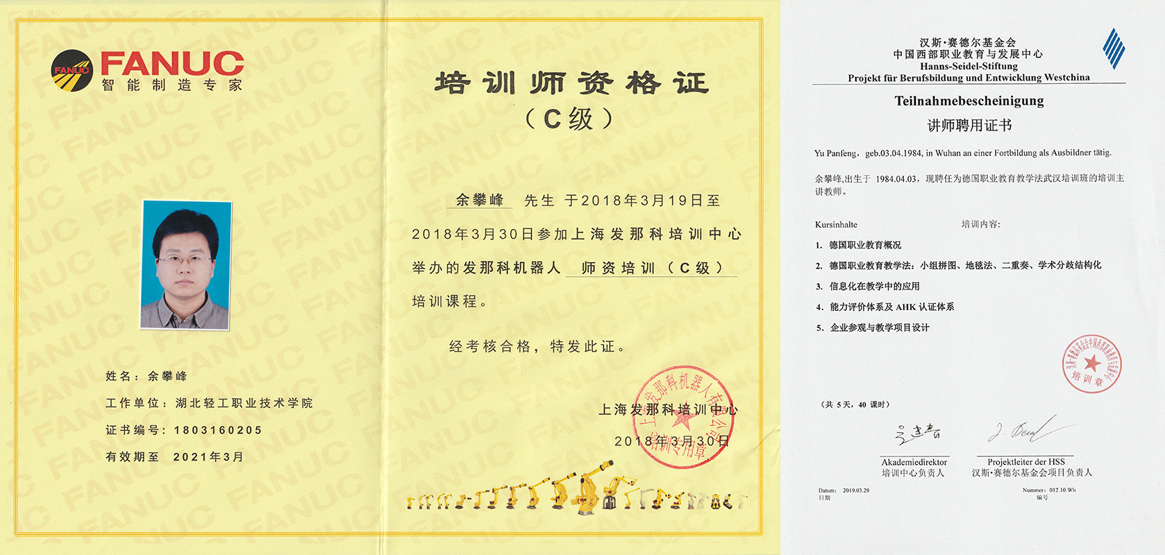 湖北武汉人,硕士研究生,工业机器人技术专业专业负责人,德国汉斯·赛德尔基金会武汉站“德国职业教学法”培训讲师,发那科工业机器人企业认证讲师(C级),曾在德国进行电气技术专业教学法培训。