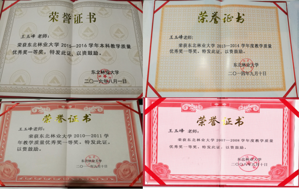二、2008,2011,2014,2016东北林业大学教学质量一等奖
