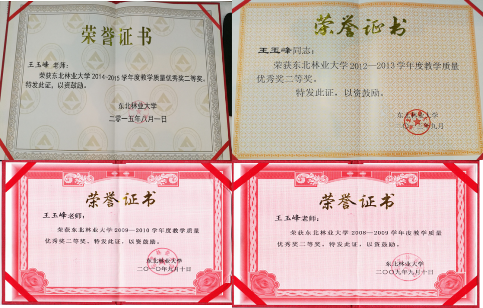 三、2005,2006,2009,2010,2013,2015东北林业大学教学质量二等奖