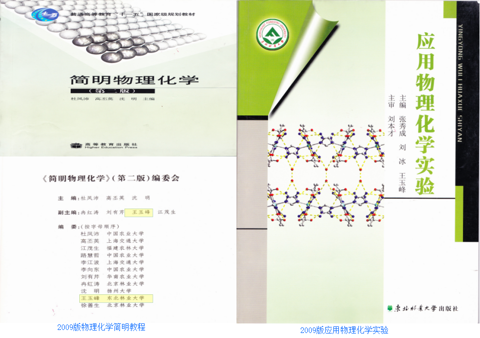 1.主编 《物理化学实验》.东北林业大学出版社.2014.