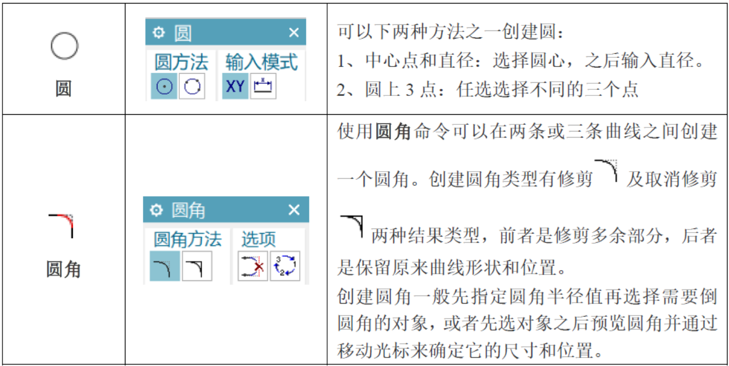直线、圆弧、圆角是轮廓线最常见的曲线对象,因此也是草图绘制最常用的工具。其中直线可以用轮廓线或者直线进行绘制,但要注意使用的区别,请参考下表: