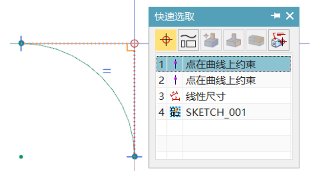 ③ 快速创建约束:选择要约束的对象(单个或多个),然后根据快捷工具栏显示的可选约束类型选择需要被约束对象的约束关系类型,如等半径