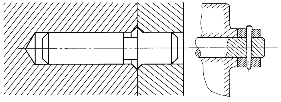 通常表示金属材料剖面符号的剖面线,为一组间隔相等、方向相同且与水平成45°的平行细实线。同一零件的所有剖面图形上,剖面线方向及间隔要一致。在装配图中,相邻金属零件的剖面线的倾斜方向应相反,或方向一致而间隔不等,如下图所示。