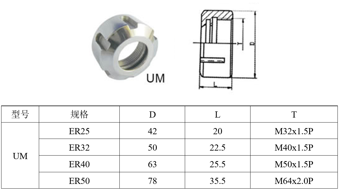 4、ER螺帽系列型号尺寸