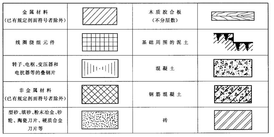依据国标GB/T 4457.5-2013《机械制图剖面区域的表示方法》,在机械行业常用的是金属和非金属的剖面符号。