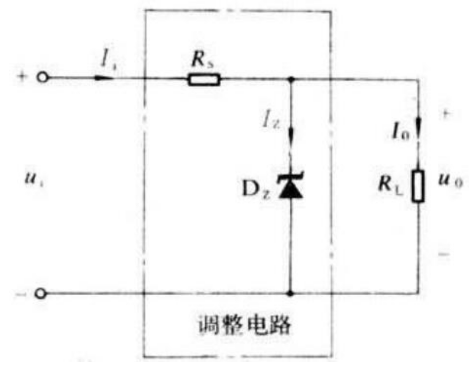 上图为简单稳压电路,由限流电阻Rs和稳压二极管Dz组成。
