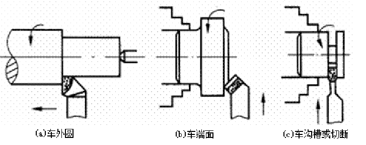 阶梯轴零件的数控车削主要有车外圆、端面、沟槽和切断。常用的刀具有外圆车刀和外圆切刀,如图3所示: