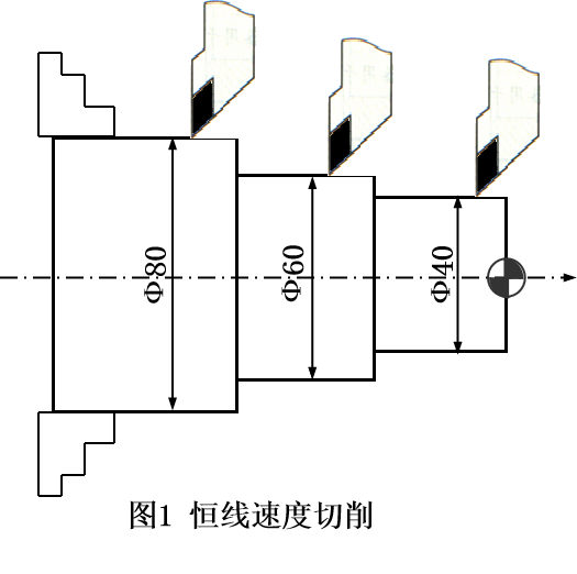如图1所示,用G96 S150指令加工Ф80、Ф60、Ф40三段不同轴颈时,其切削点线速度为150m/min,而主轴转速分别为: