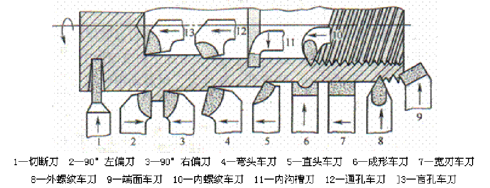 数控车刀根据其切削刃类型不同,一般有尖形车刀、圆弧形车刀和成型车刀3类。