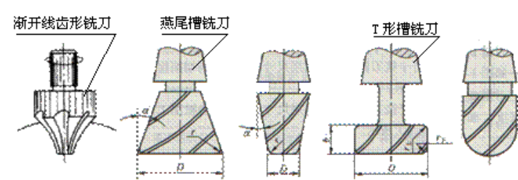 成形铣刀一般是为特定形状的工件或加工内容专门设计制造的,如渐开线齿面、燕尾槽和T形槽等。常用成形铣刀如图6所示。