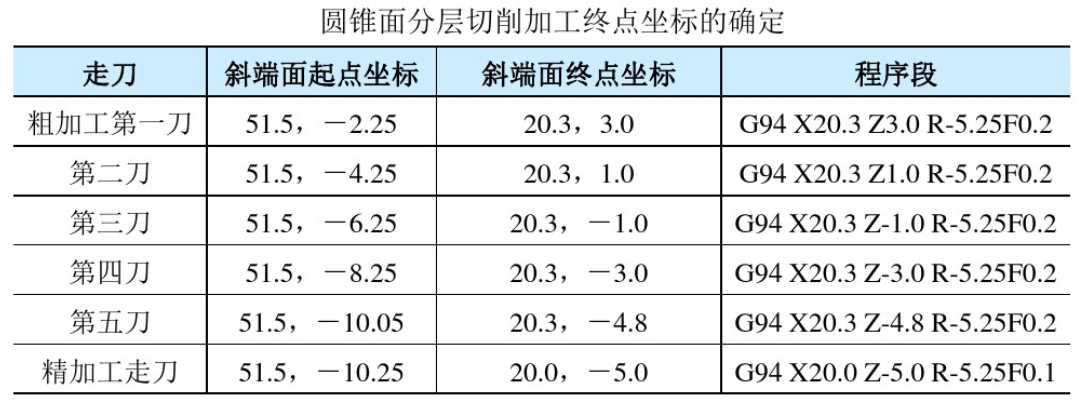 G94 X20.3 Z3 R-5.25 F0.2;(调用G94车削斜端面,X向留双边0.3mm 精加工余量)