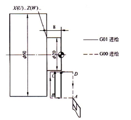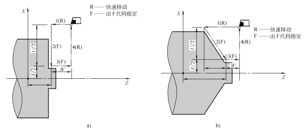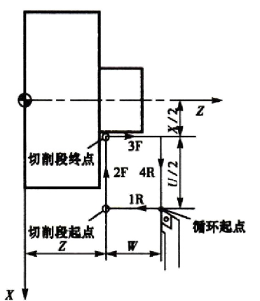 其中:X(U)、Z(W)及R的含义都与G90相同。