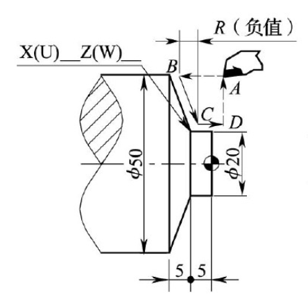 当车削的锥端面左端半径大于右端半径时,R为“+”,否则为负。运动轨迹如下图2。