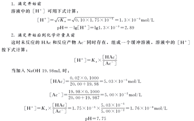 以0.1000 mol/LNaOH 溶液滴定20.00 mL 0.1000 mol/L HAc溶液为例进行讨论。滴定过程中发生如下的中和反应: