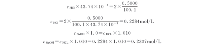 因此,HCl溶液浓度为0.2284 mol/L,NaOH 溶液浓度为0.2307 mol/L。