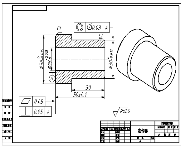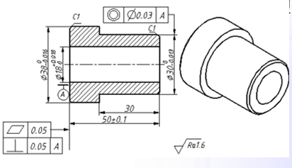 内孔面表面粗糙度Ra值为3.2~0.1μm,精密套类零件为Ra值为0.025μm;外圆面表面粗糙度Ra值为3.2~0.4μm。