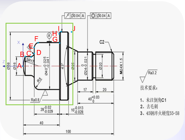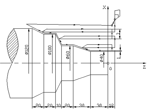 例:用G71、G70指令加工如图所示零件右端各外轮廓,零件材料为45钢。
