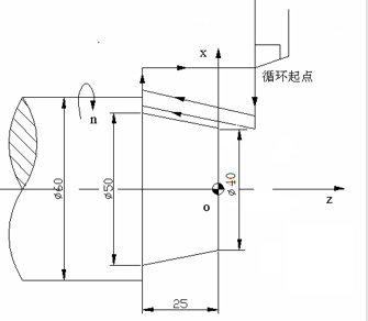 例:如图2-15所示,对斜端面进行切削循环编程。