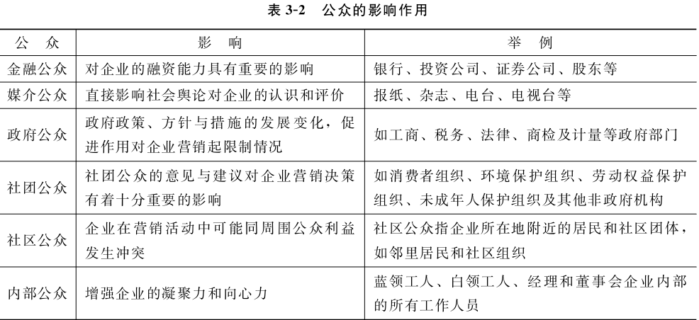 公众是企业营销活动中与企业营销活动发生关系的各种群体的总称。公众对企业的态度,会对其营销活动产生巨大的影响,它既可以有助于企业树立良好的形象,也可能妨碍企业的形象。