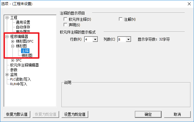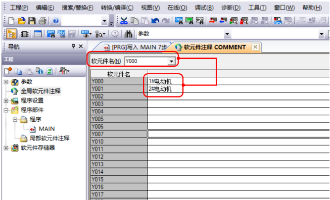 注释:解释说明单个软元件的功能。