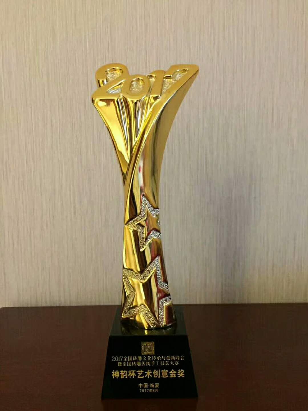2017年8月参加全国砖雕文化传承与创新峰会暨全国砖雕传统手工技艺大赛中,荣获全国砖雕传承发展杰出贡献奖和砖雕收藏家荣誉,同时“印象丝路”砖雕作品荣获“艺术创意”金奖;