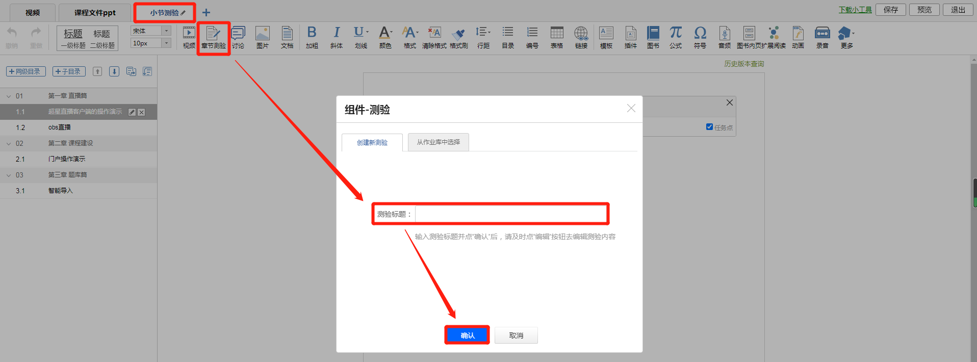 8.添加章节测验:添加测验后,需要进入编辑,添加题目。