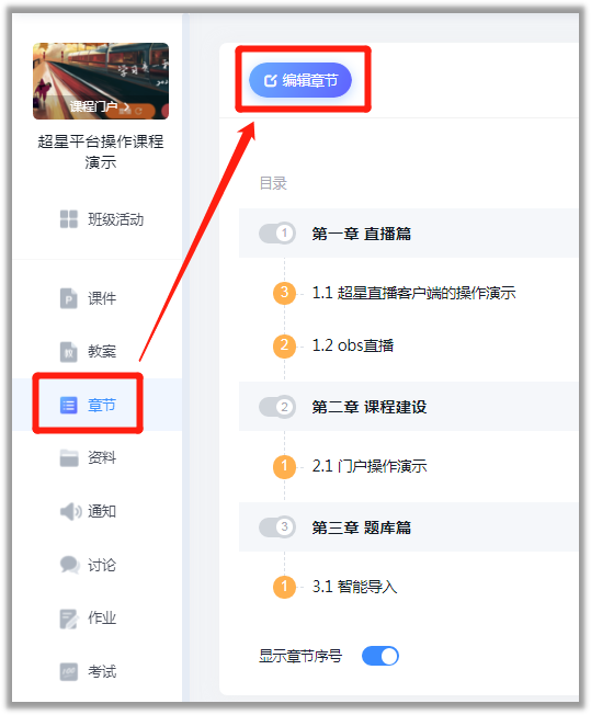3.左侧导航栏找到【章节】,点击【编辑章节】