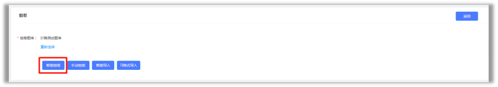 ①点击对应题库后面的【组卷】,选择【智能组卷】,进行试卷结构设置。