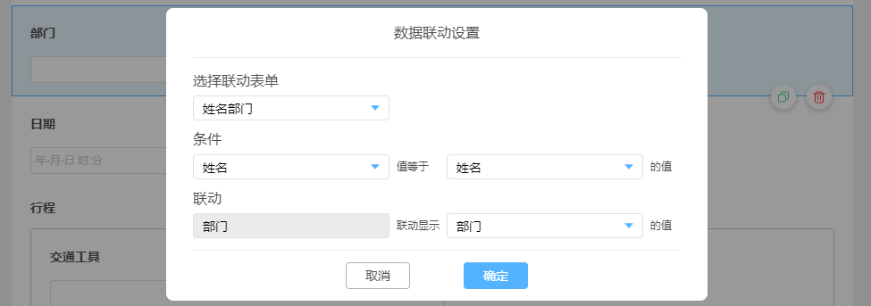 数据联动功能是在一个表单中调用另一个表单中满足一定条件的录入数据。