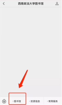 1、扫描二维码关注“西南政法大学图书馆微信公众号”,进入公众号首页。