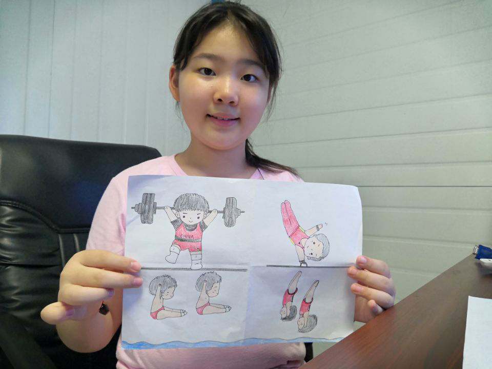 每天早上起床,我都会在各大媒体看到中国奥运健儿的精彩瞬间,让我这个“胖胖”的小女孩也爱上了这种极限挑战。于是,我拿起了画笔,以简单的卡通形象来记录这精彩的一瞬,希望以这种方式为奥运健儿加油,也希望通过这种方式让自己懂得”只有付出过汗水,才能成功!“的道理。