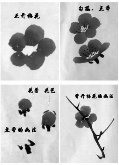 梅花因为是树长的,因此一般只画梅花的某个局部,因而我们画的梅花也称为折枝花卉。