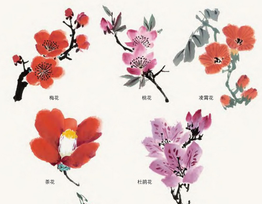 学习花鸟画大部分人是以自学为主的,即使有所师承,也要以自己为主,有计划、有步骤地学习,不能随着性情毫无目的去画,要按部就班,从易入手,循序渐进。对初学者来说最有效的方法就如同打仗一样,集中兵力各个击破。首先选出重点,达到触类旁通的效果。例如很多花卉,枝干造型近似,只是花与叶不同,只要在花与叶上有所变化,花卉的画法就变得容易多了。画梅花、腊梅、桃花、梨花等都几乎相通。再如:画五瓣花卉,可以从梅花花朵练起,再扩大到山茶花、杜鹃花,由单瓣花卉扩大到复瓣花卉,如月季、牡丹等,这样就能把花朵的变化掌握清楚,得心应手。各种花卉的叶子变化也有规律可循,由茶花的单片叶子练起,将三个分散的单片叶子用叶柄相连,即画成扁豆花叶。三个单片叶聚拢在一起即是牵牛花叶。将五个分散的单片叶用叶柄连接即是月季花叶,而五片叶聚拢就画成了菊花的叶子。再将菊花叶子放大,即可做丝瓜、葡萄、蜀葵、芙蓉、梧桐等较大型掌状叶子。这种利用共性的规律举一反三,以少获多的学习方法是掌握花卉画法的一条便捷之路。