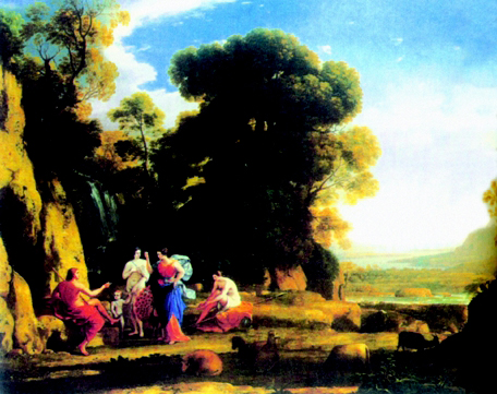 克洛德·洛兰(1600~1682),法国古典主义风景画的奠基人。生于法国南锡,自幼家境贫寒,约13 岁时流浪到罗马,跟随当地一名叫塔西的人学画,后定居罗马。他的风景画富有诗意,带有传统色彩,颇受上层社会的欢迎。他在美术史上的突出贡献是把风景画提升到了主要的位置,并开创了一种崭新的艺术风格。他的代表作还有《海港的落日》、《乡村节日》、《艾萨克和利百加的婚礼》等。