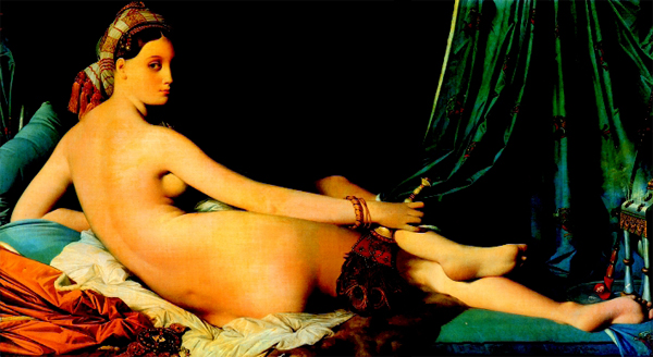 《大宫女》这一画题是为与其他几幅《宫女》相区别而起的名,因为安格尔先后画过好几幅以宫女为题材的画。此幅作品中的色调优美、别致,充满了浓厚的装饰性和异国情调。从严格的古典规范看,这幅画存在着不合规范之处:首先是背景的蓝色和宫女肌肤的黄色,在色调上并不谐调;其次是形体过分夸张,拉长的背部使人体比例失调。但他的弟子曾为此辩解说:“可是这又怎么样呢?也许正因为这段修长的腰部才使她如此柔和,能一下子慑服住观众。假如她的身体比例绝对准确,那就很可能不这么诱人了。”这个裸体几乎成了变形美的典范,正是这种拉长腰身、柔媚异常的人体美才充分表现了宫廷女性肌肤细腻、骨肉均匀的特殊之处。