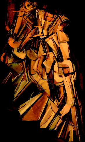 《下楼梯的裸女:第二号》是杜尚的一幅代表作。画中楼梯被描绘成松散的有机体形状,画面人物呈现尖锐的几何形状,运动的速度显得更快而又断断续续。这幅画成为现代艺术中狂热性的典型象征,因而也成了传世名作。
