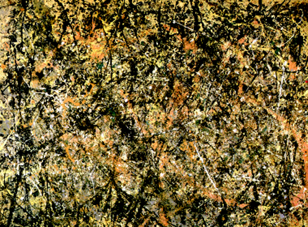 波洛克(1912~1956),20世纪西方抽象表现主义的代表,“行动绘画”的先驱者。出生于美国怀俄明州的科迪镇,曾在洛杉矶艺术学院学习,后移居纽约。他的艺术受到了欧洲超现实主义潜意识创作以及印第安“沙画”的影响,创造出了独具一格的“行动绘画”风格。他的代表作有《月亮女人切割圆》、《一体,作品第三十号》、《青色柱子》以及《薰衣草之雾:第一号》等。