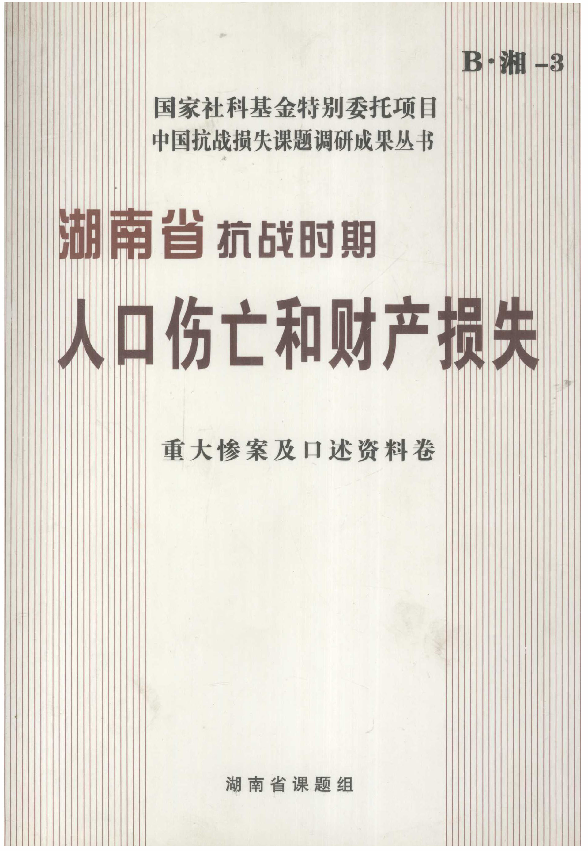 湖南省抗战时期人口伤亡和财产损失 重大惨案及口述资料卷
