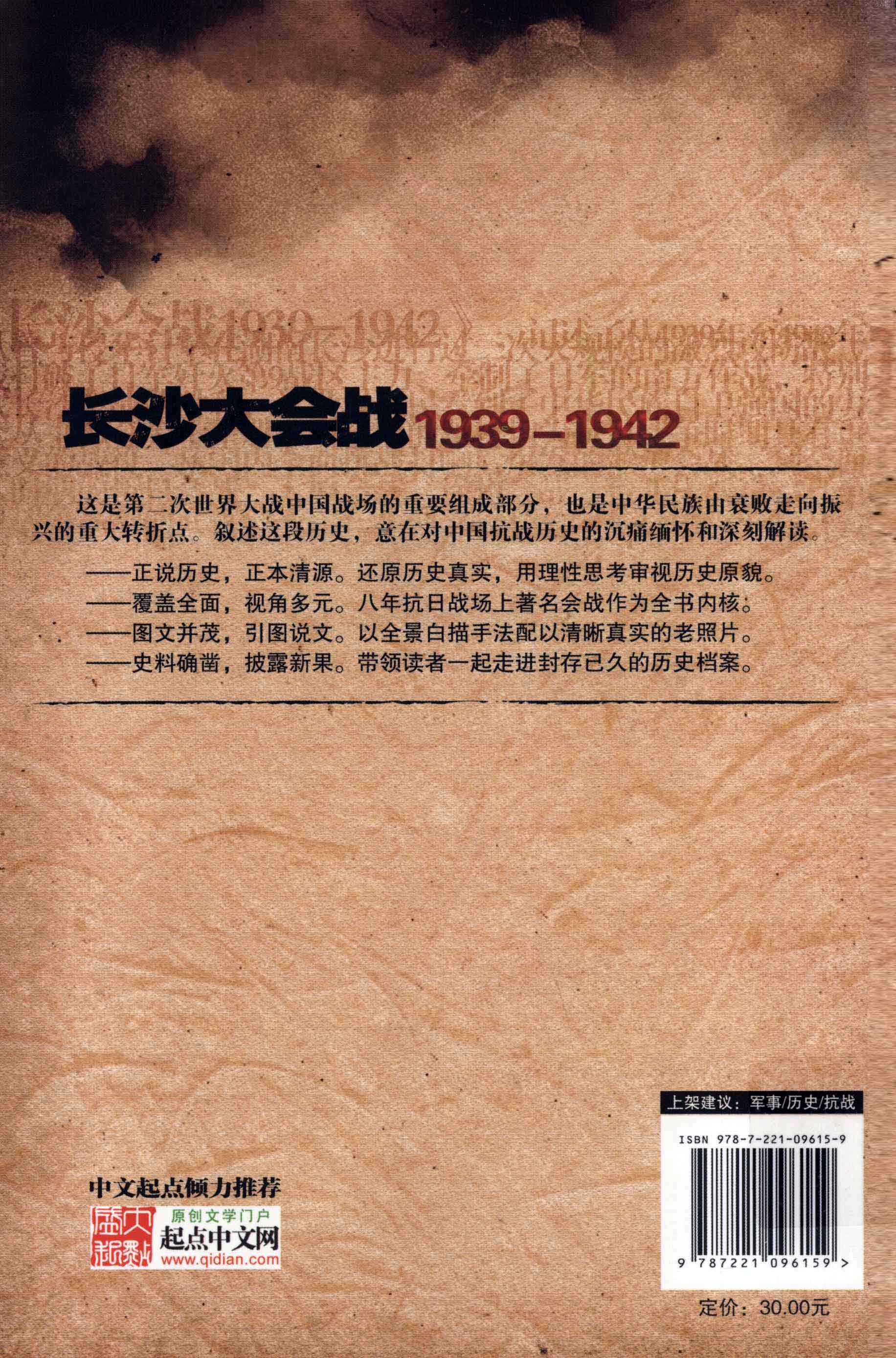 内容简介: 在伟大的抗日战争中,湖南境内发生了一场场中国军队同日本侵略军的激烈战斗。《长沙大会战1939-1942》全面客观地记录了三次长沙会战的重大战役行动。在作者详实的史料占有、深入的实地考察和大量亲历者采访的基础上,作品以恢弘而细腻的文笔,再现了当年极其雄壮而惨烈的战争场景,激情讴歌了中国军民在浴血战斗中表现出的英勇精神。披露了大量鲜为人知的生动史实,使《长沙大会战1939-1942》具有珍贵的史料文献价值与可阅读性。