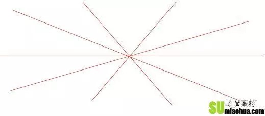 2.然后在这条横线的中心(一定是中心)取一个点。向外散发射线