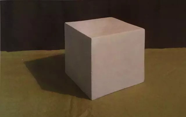 实物为一个有衬布的正方体,光源从斜上方照射下来,使其黑、白、灰关系明确。