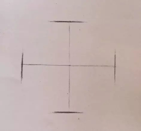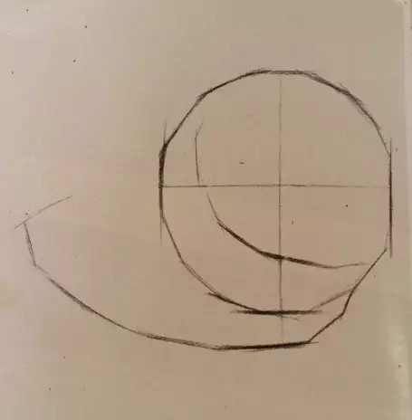 从整体观察和分析对象的结构。根据构图的需要,确定球体在画面中的位置,同时还要考虑球体的高、宽比例,再轻轻地绘制出中心轴线。