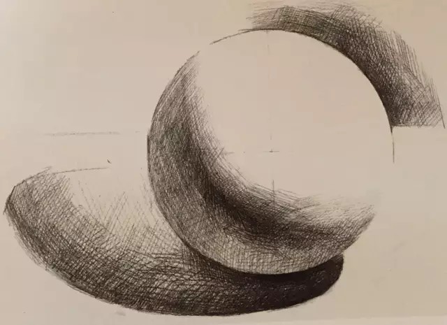 从球体的立体空间出发,进一步分析它的形体结构。运用线条的轻重、粗细、虚实来表现球体的形体结构,并绘制出投影的大体轮廓。