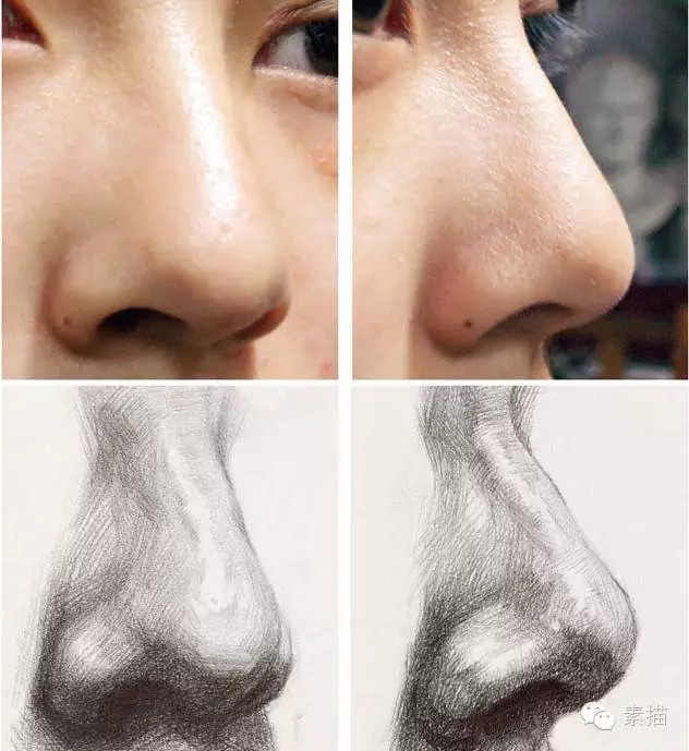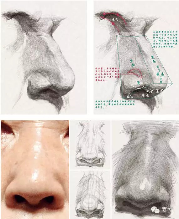 希望大家将下方的五幅图结合起来观察,从而能更好地理解鼻骨和透视对鼻部形体的影响