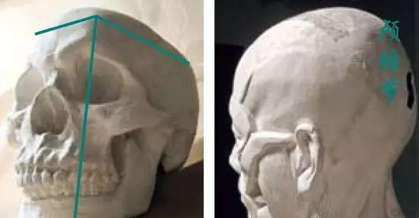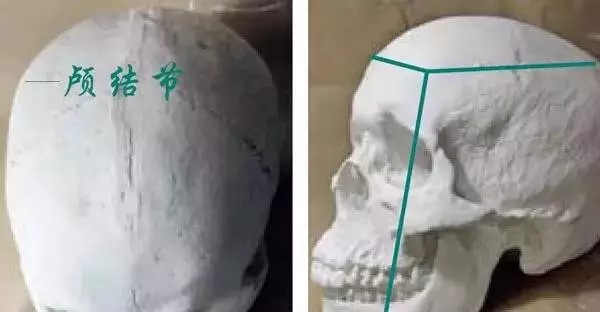 从俯视角度看头骨时,前方的面部偏窄,后方的脑勺偏宽,如果用“方”的眼光观察,那么最重要的两处转折就在颞线和后方的颅结节上了。