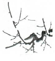 全侧的花:一般画三瓣即可,中间较大,两侧较小,露出一部分花须、蕊头。因透视角度不同,有些全侧花可不点须蕊。 花蕾:呈圆形,比花朵小,有的紧包未开,画成圆圈即可。初绽的,两三个圆弧交叠便成。先画枝,后画蕾,蕾多生在枝梢。画蕾,用浓墨点托,显其精神。