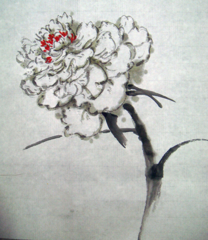 牡丹画中,花蒂与花蕊所占的面积虽然不大,但非常重要。特别是花蕊,如果画好了则有画龙点睛之效。