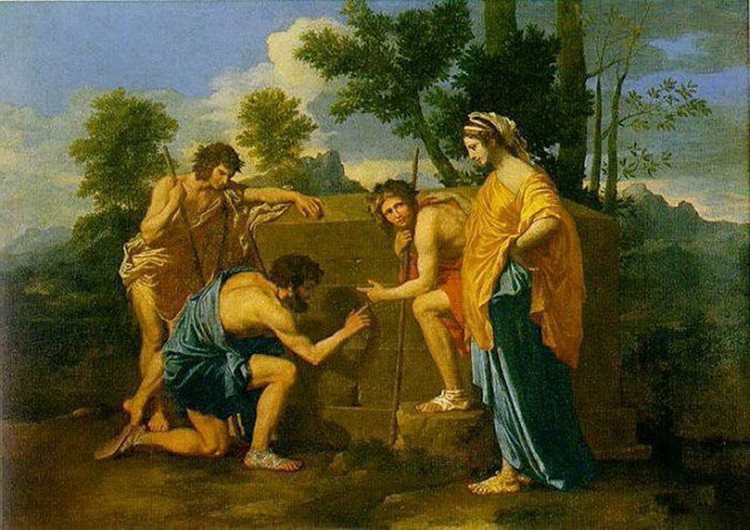 阿卡迪亚的牧人 普桑 作于1638~1639年 油画 85×121厘米 现藏巴黎卢浮宫